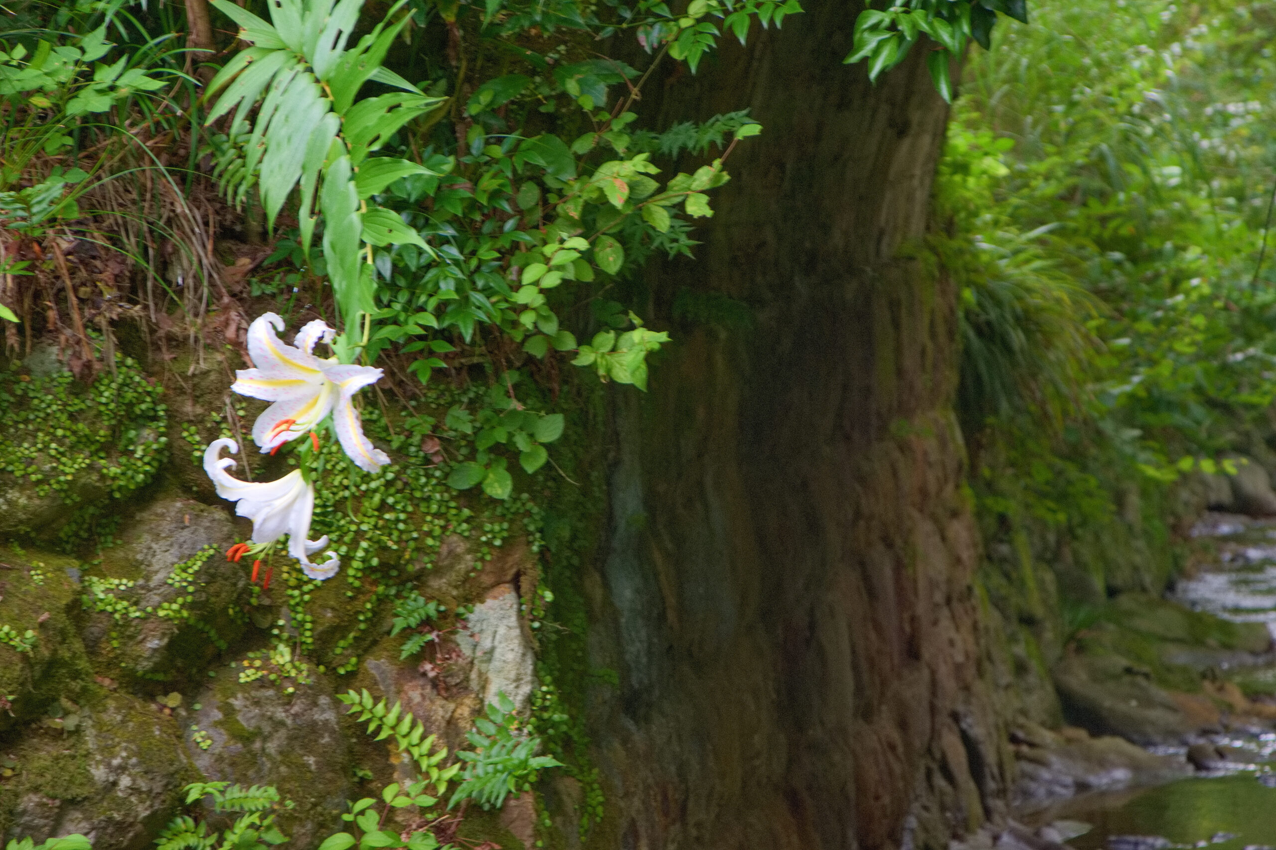 トンネル付近には花弁が大きい山百合(鳳来寺百合)が自生。緑のトンネルに立派に咲いて程よいアクセントになっている。