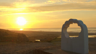 海側に「幸せの鐘」がある。