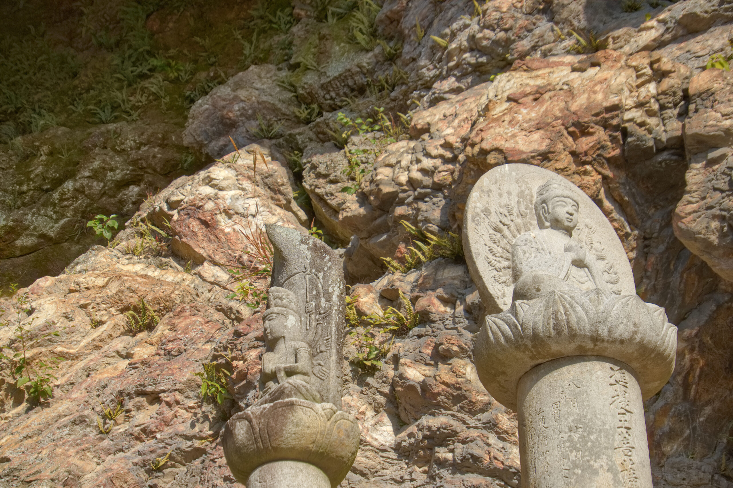 岩肌の表面が露わになっている感じとなり、観音像は一層と際立った存在となっているようだ。