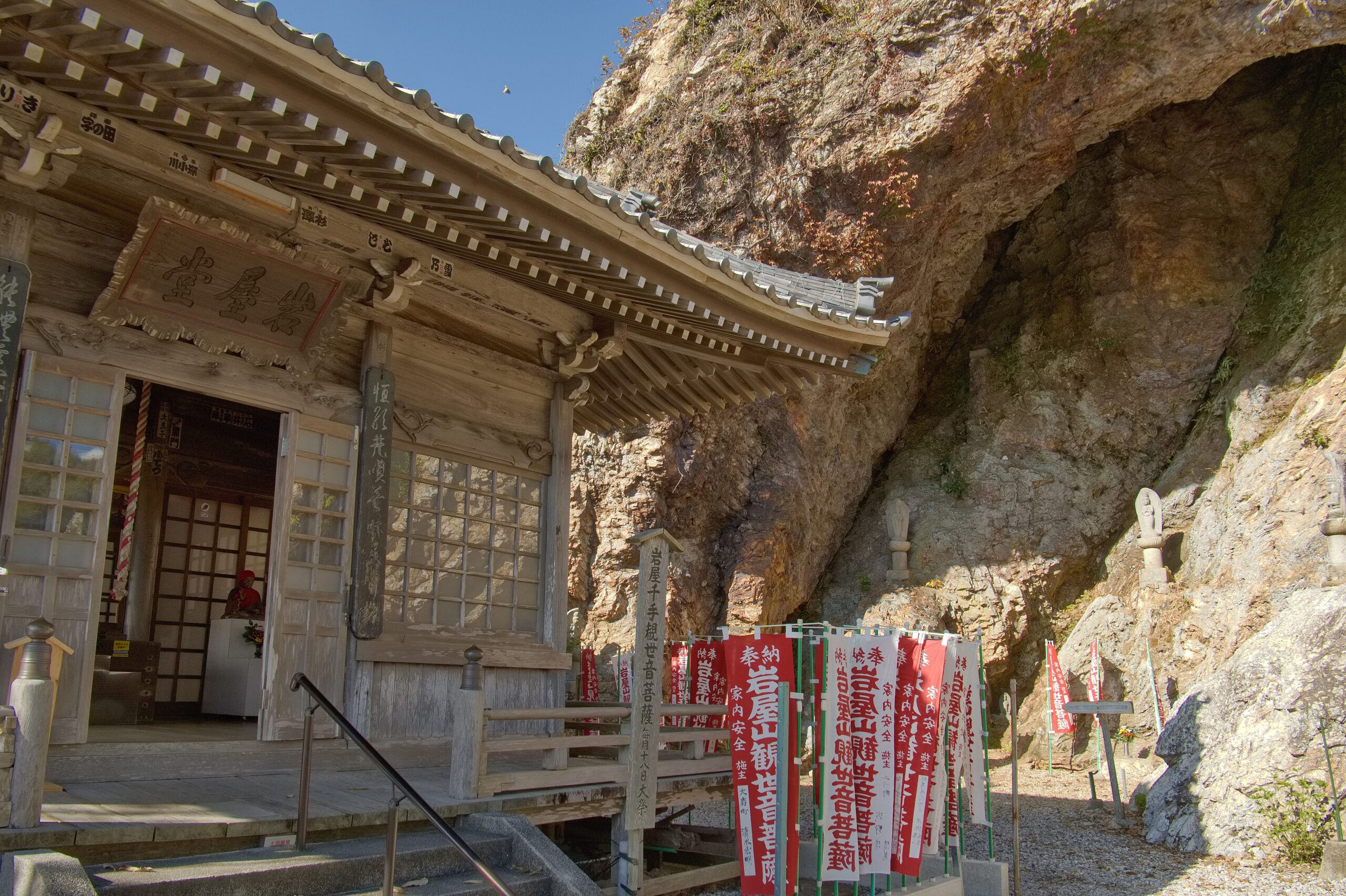 観音堂まで来てみた。岩屋観音は730年に僧である行基が諸国巡行にてここ岩屋山に訪れた際に、千手観音像を掘り祀った場所となる。
