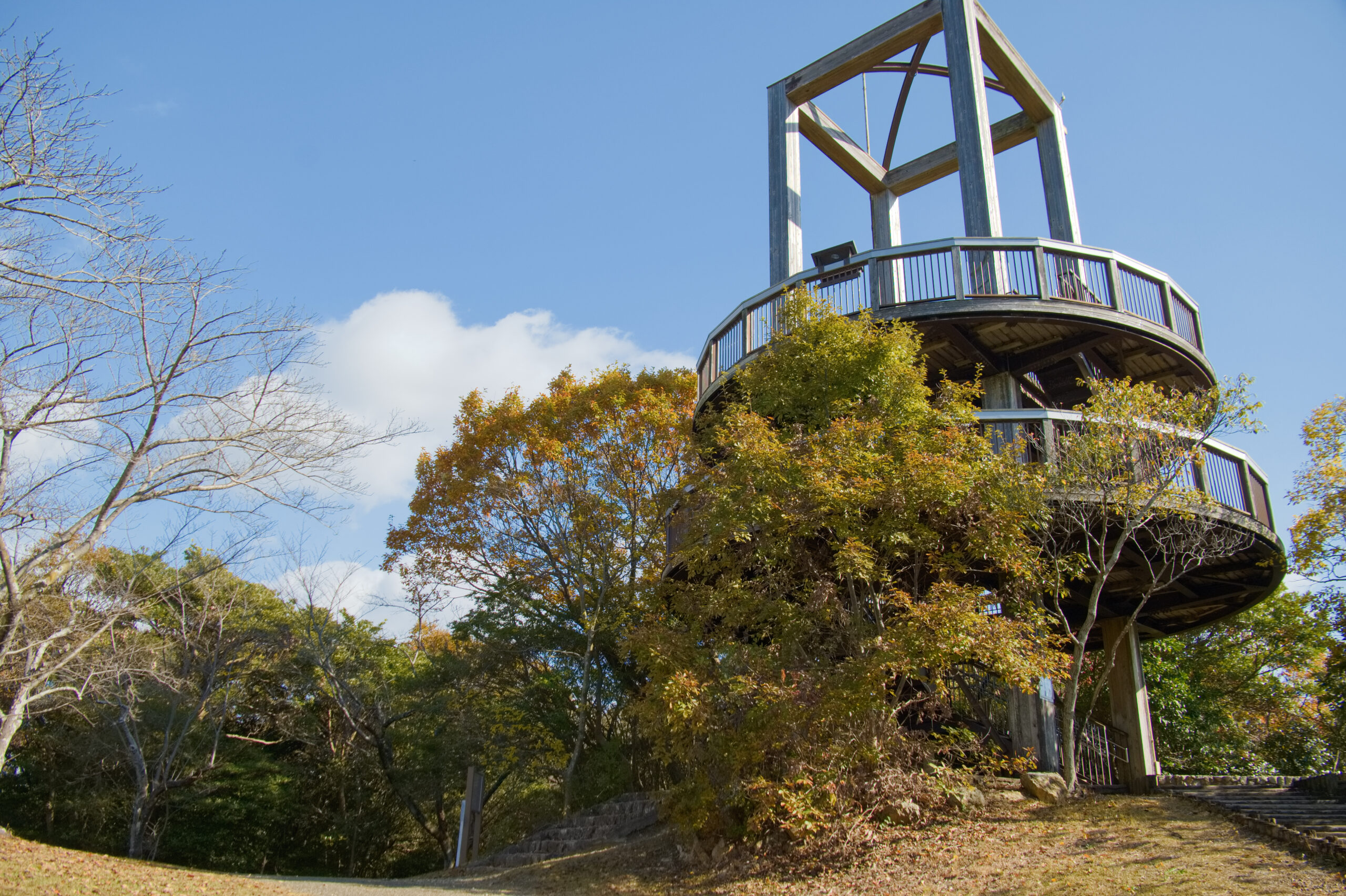 開けた場所に建っている展望台は近くで見ると面白い形をしている。展望台のデッキは円のようにぐるりと周りの景色を見渡せるように工夫されている。