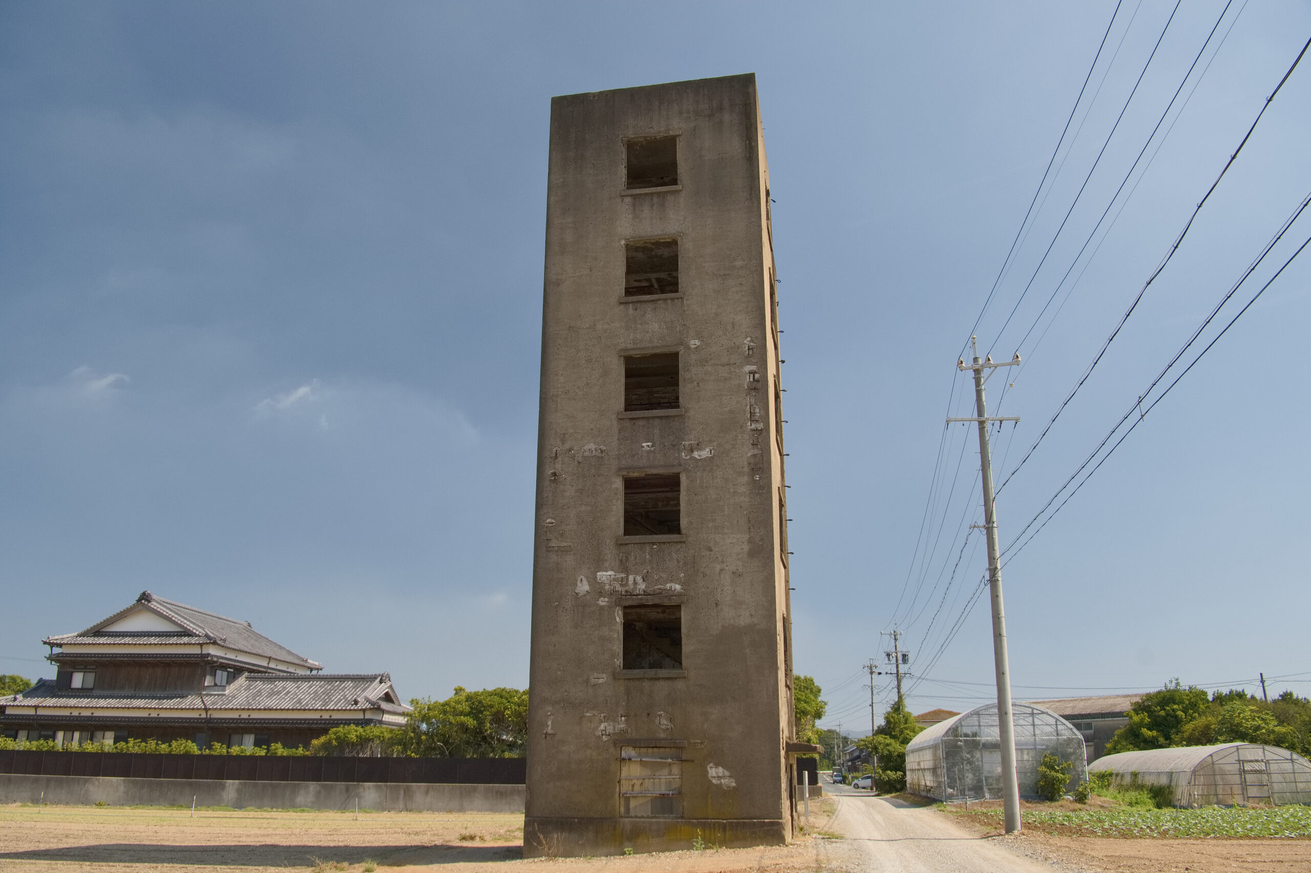 田原市においても戦争に関わる遺構は残っており、その中でも一際目立つのが住宅や畑の中に存在する気象塔兼展望塔(通称:六階建)がある。