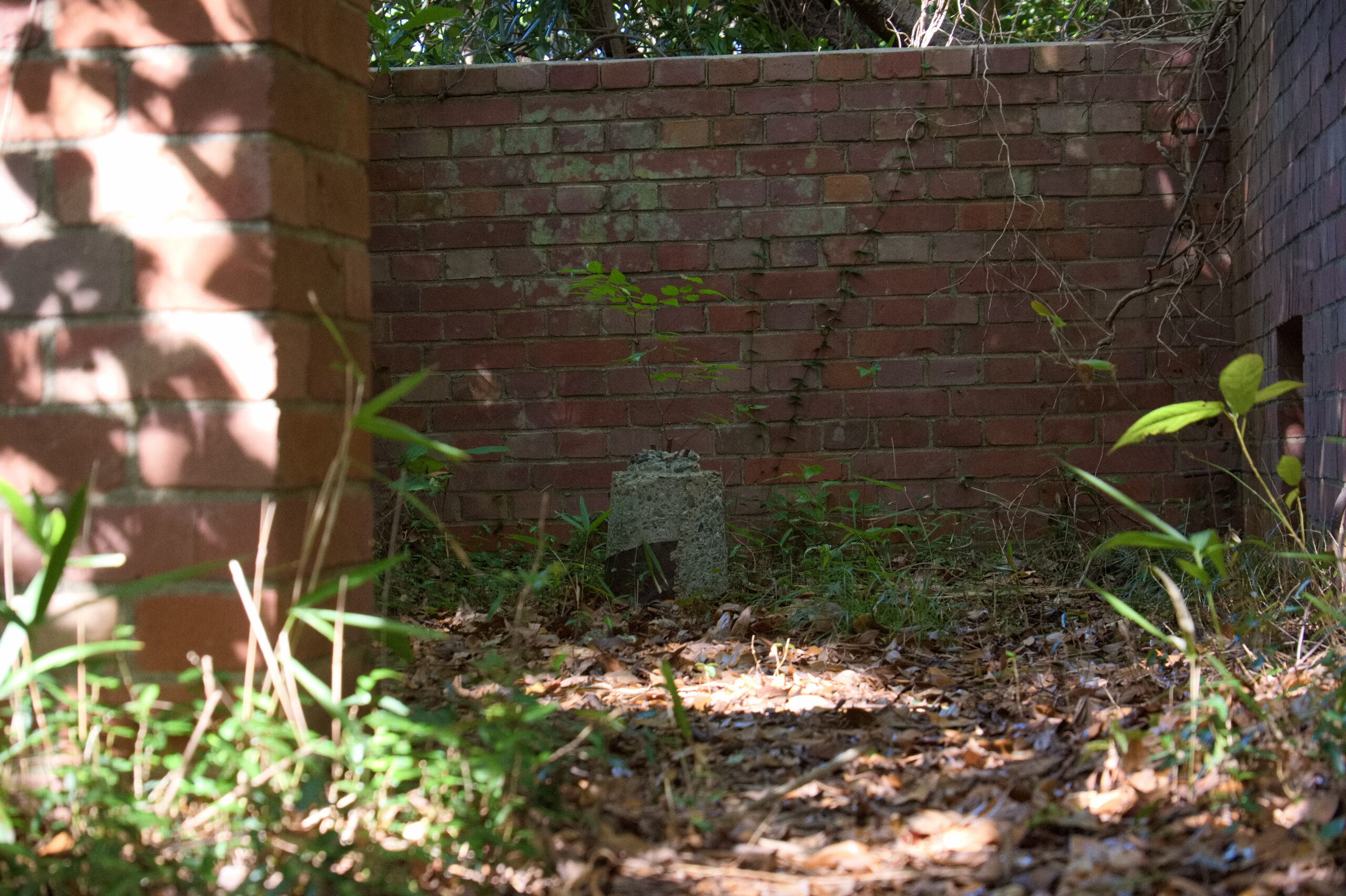 レンガ造りの竈のような構造に歴史を感じさせる。藪の中にあり観測所という名残は見られないが、小山ということもありかつては確認しやすかったのかもしれない。